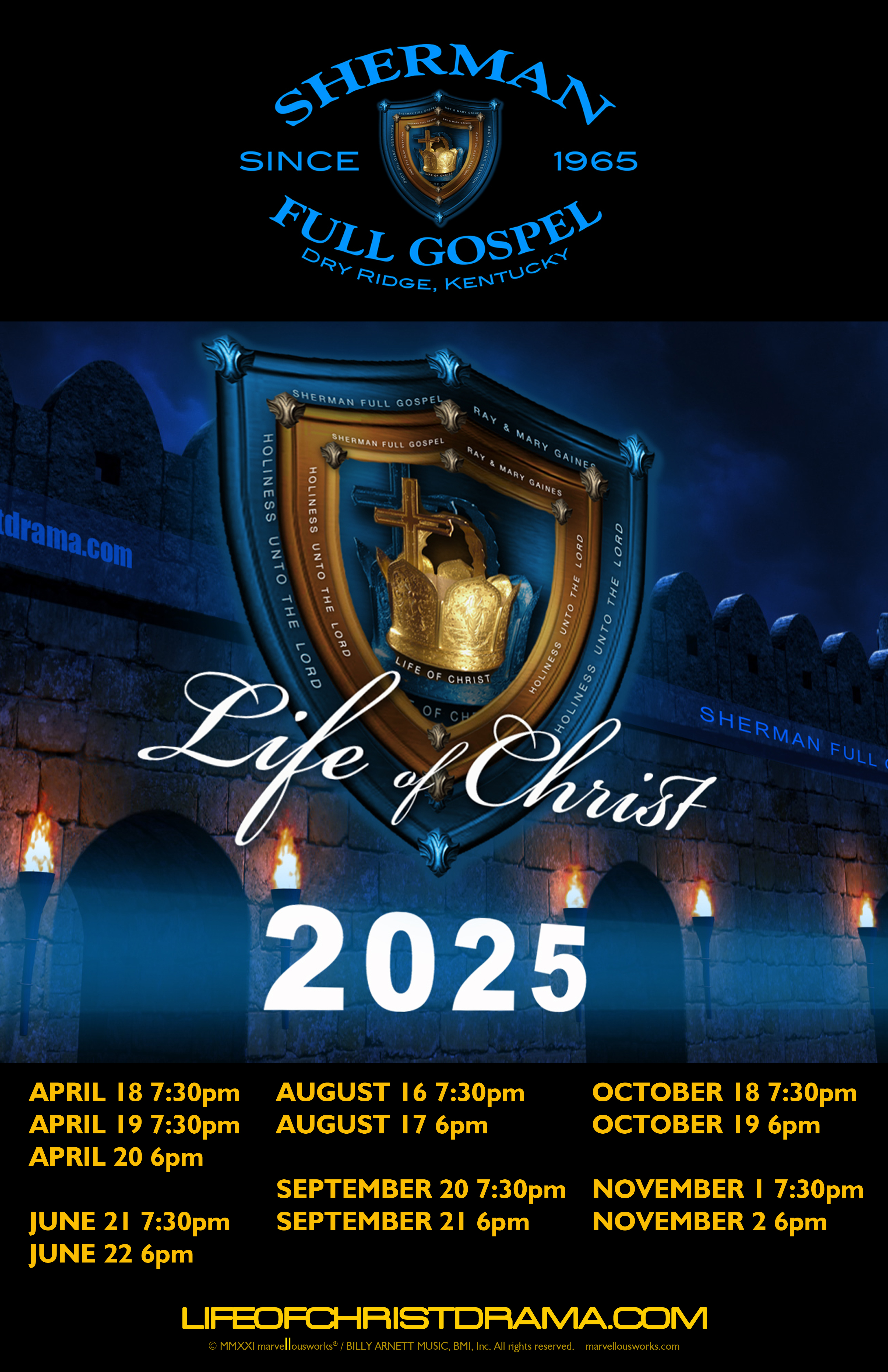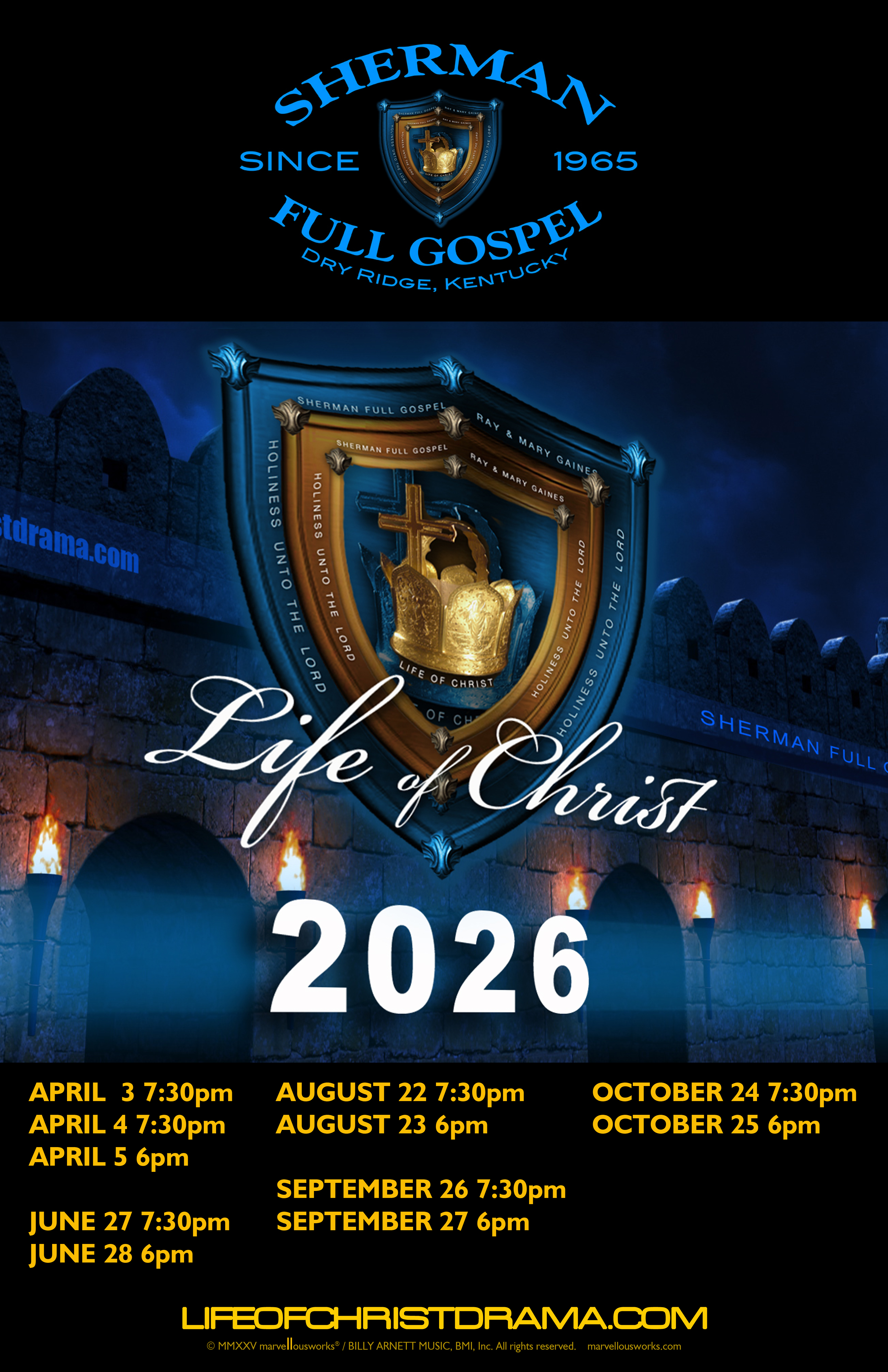 In 1965 Sherman Full Gospel was founded near Dry Ridge, KY, by the Gaines family and has been operated by the family since then. The church is located near Dry Ridge, KY, just south of Cincinnati, OH. Pastor Ray was given a vision of a drama ministry for the church, and in 2016, the […]